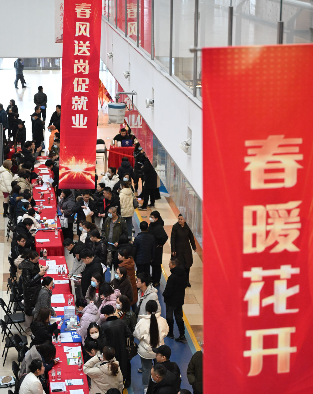 2024年2月29日,天津市東麗區(qū)舉行招聘會(huì),采取“線(xiàn)上+線(xiàn)下”結(jié)合的方式,精準(zhǔn)人崗對(duì)接,解決企業(yè)用工難題。新華社記者 孫凡越 攝