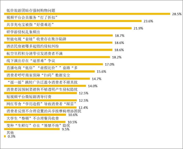 3月14日,中國消費者協會對外發(fā)布2024年“激發(fā)消費活力”消費維權年主題調查報告,調查結果顯示,低價旅游團暗存強制購物、視頻平臺會員服務“打了折扣”、共享充電寶“好借難還”引共鳴。
