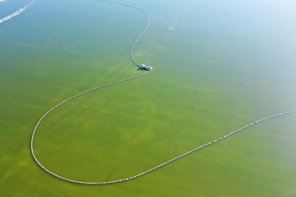 梁戰(zhàn)軍在采鹽船上工作了20年,負(fù)責(zé)兩艘采鹽船的采收任務(wù)。他告訴記者,現(xiàn)在采鹽過程已基本實(shí)現(xiàn)自動化,可24小時作業(yè),自己所在的采鹽船每天大約能采集5500噸光鹵石。