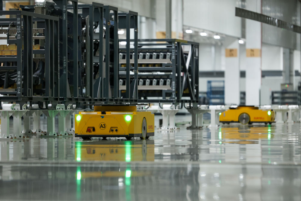 從空中俯瞰大眾安徽MEB工廠,一輛輛大貨車陸續(xù)排隊(duì)進(jìn)入園區(qū),運(yùn)送物料;步入車間,AGV小車有序往來,準(zhǔn)備出口歐洲的訂單正在這里抓緊生產(chǎn)等待交付。