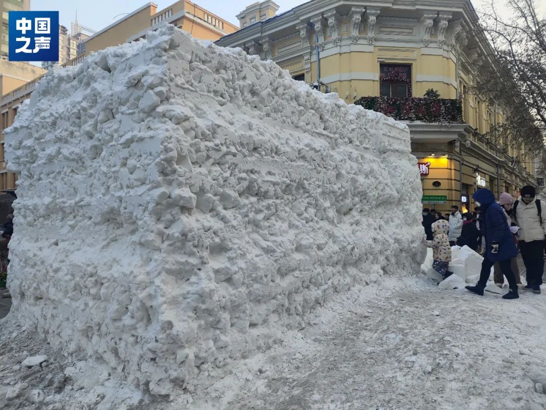 △哈爾濱中央大街上未雕刻的雪胚