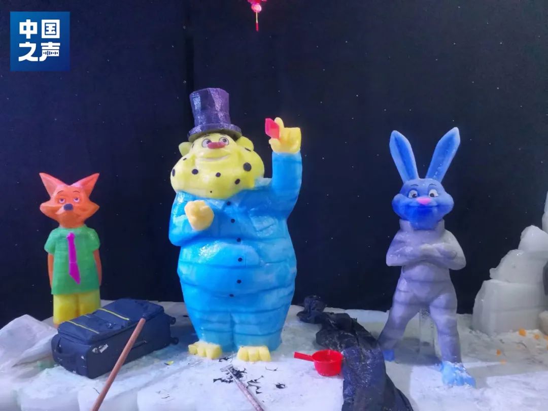 一桌人,臧洪洲歲數(shù)最大,最年輕的30來(lái)歲,用臧師傅的話說(shuō),小伙子是學(xué)習(xí)美術(shù)雕刻的“科班出身”,能堅(jiān)持下來(lái)做冰雕雪雕,實(shí)屬不易。“因?yàn)樽霰裱┑窆ぷ,必須有體力的支撐,年輕人干一干就厭煩了,但是堅(jiān)持過(guò)來(lái)的這些年輕人都行,技術(shù)水平都相當(dāng)高”。
