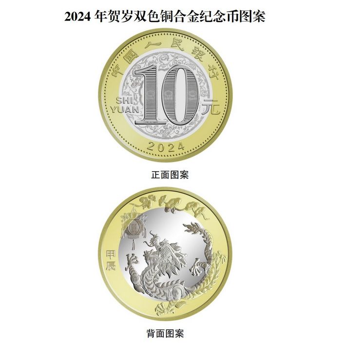 2024年賀歲雙色銅合金紀(jì)念幣圖案。圖自中國(guó)人民銀行網(wǎng)站