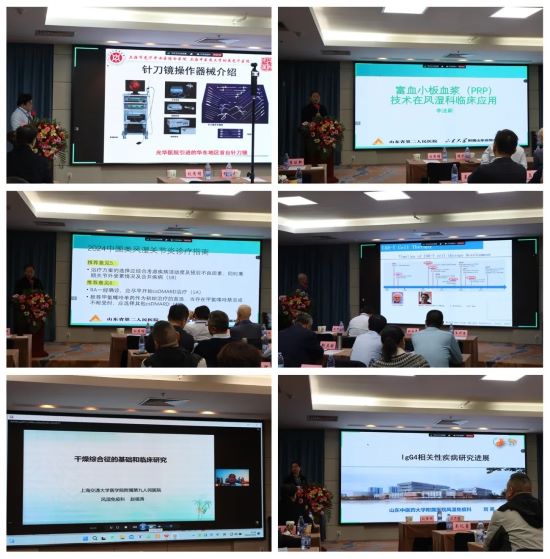 學(xué)術(shù)講座交流環(huán)節(jié),上海中醫(yī)藥大學(xué)附屬光華醫(yī)院程少丹博士《中醫(yī)微創(chuàng)針刀鏡技術(shù)系統(tǒng)在風(fēng)濕病中臨床應(yīng)用》、復(fù)旦大學(xué)生命科學(xué)院張鴻聲教授《CAR-T技術(shù)在自身免疫性疾病的治療結(jié)果和進(jìn)展》、濟(jì)南中西醫(yī)結(jié)合學(xué)會風(fēng)濕病專業(yè)委員會主委李法新教授《PRP技術(shù)臨床應(yīng)用(RA治療新進(jìn)展)》、山東省第二人民醫(yī)院于成文教授《超聲引導(dǎo)下風(fēng)濕病精準(zhǔn)治療》、山東省中西醫(yī)結(jié)合醫(yī)院靳啟國教授《當(dāng)前醫(yī)保形勢下風(fēng)濕學(xué)科面臨困境及挑戰(zhàn)》、山東省第二人民醫(yī)院井西波教授《肺動脈高壓的手術(shù)治療》、上海第九人民醫(yī)院趙福濤教授《干燥綜合征研究進(jìn)展》、齊魯醫(yī)院丁峰教授《木村病》、山東中醫(yī)藥大學(xué)附屬醫(yī)院劉英教授《IgG4相關(guān)疾病》等多位專家針對風(fēng)濕的機(jī)遇與挑戰(zhàn)、風(fēng)濕疾病的診療進(jìn)展等進(jìn)行了精彩授課,并于現(xiàn)場專家們展開學(xué)術(shù)問題交流。