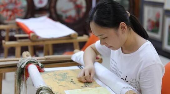 非遺傳承人繡制《樂雁圖》
